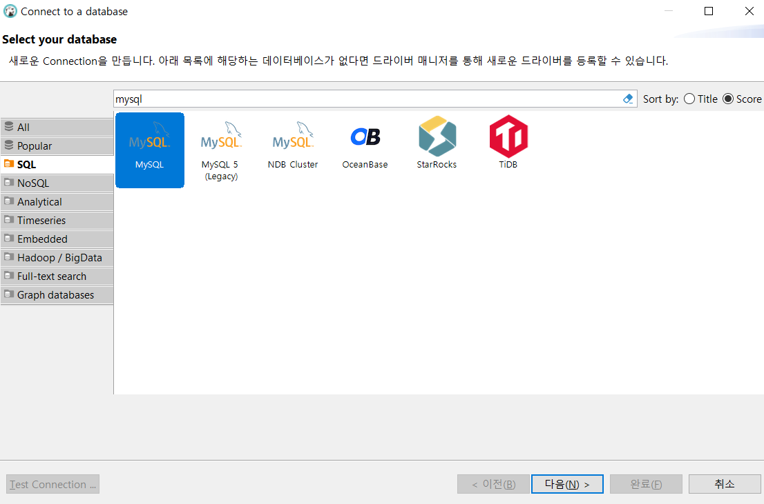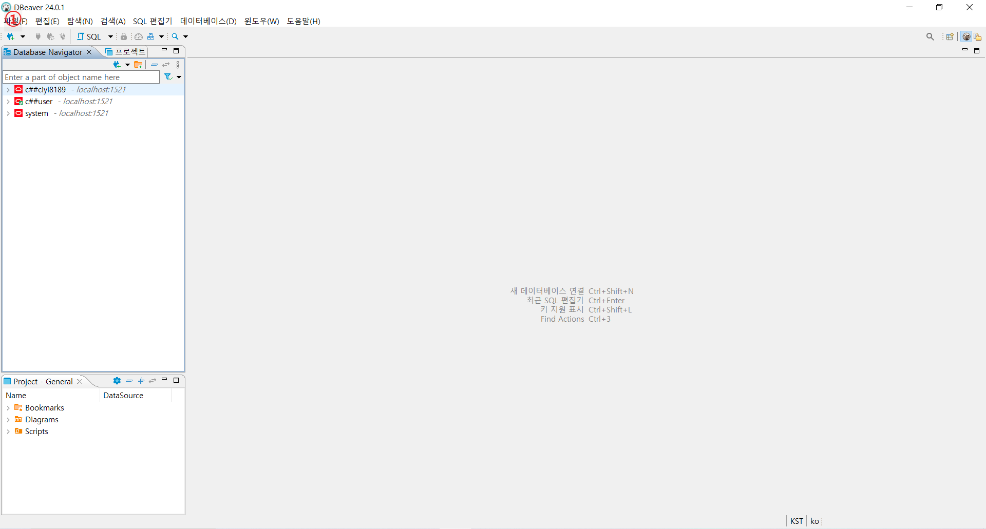 왼쪽 상단에 있는 새 데이터베이스 연결을 클릭해준다 (ctrl + shift + n)