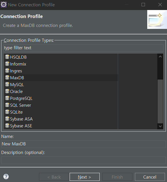 자신이 사용하는 데이터베이스를 클릭 후 Next를 눌러준다